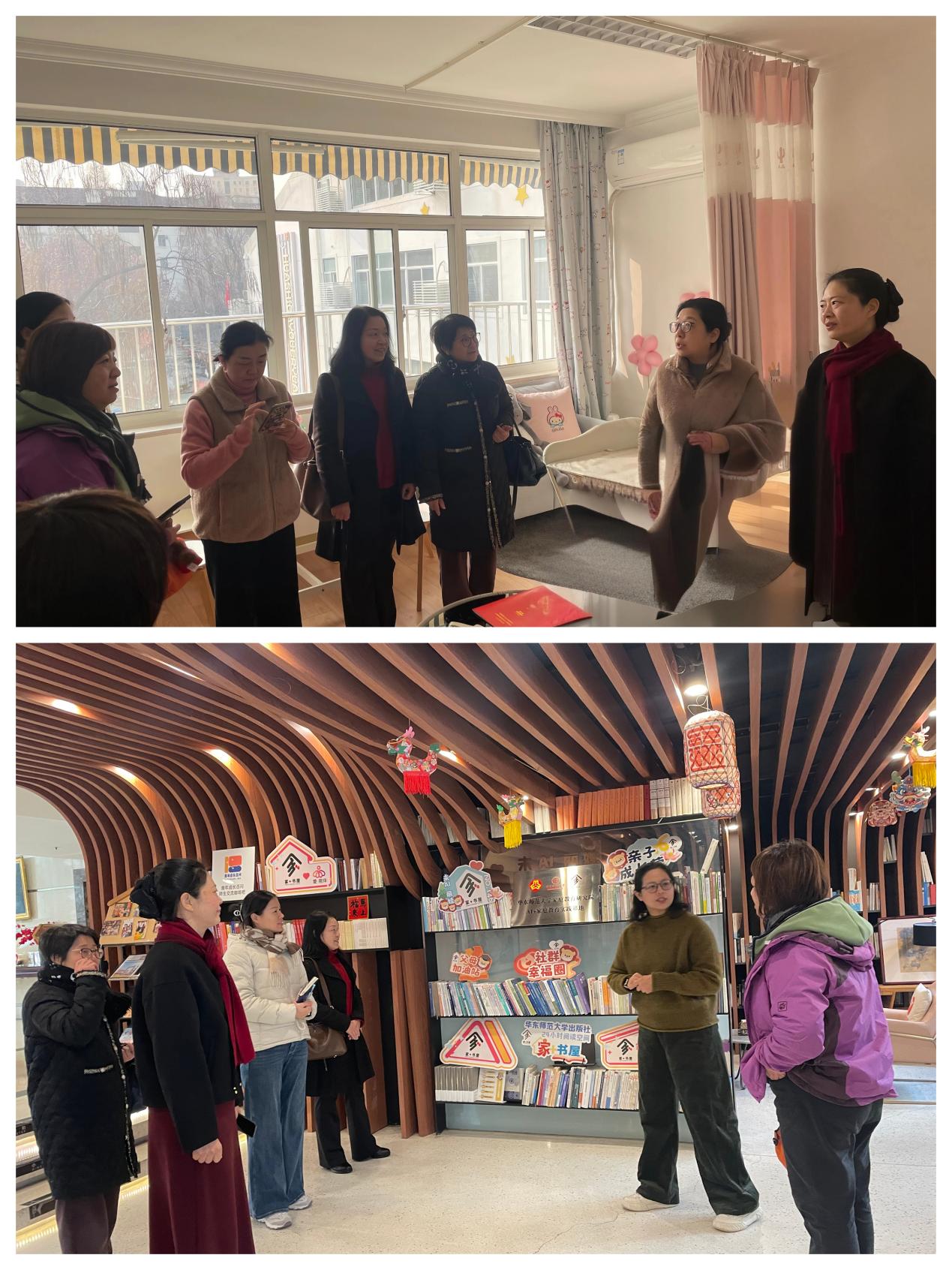 会后,来访一行参观了我校附属幼儿园“妈咪小屋”与“家+书屋”24小时阅读空间,实地感受我校在营造友好、温馨校园环境方面所做的努力。