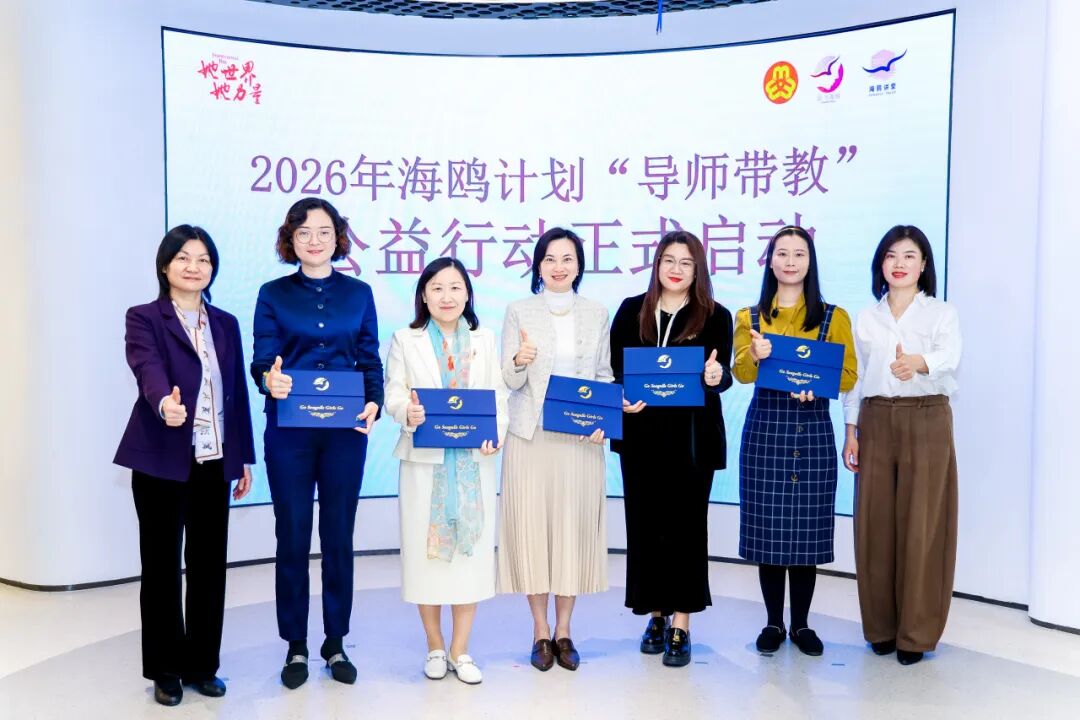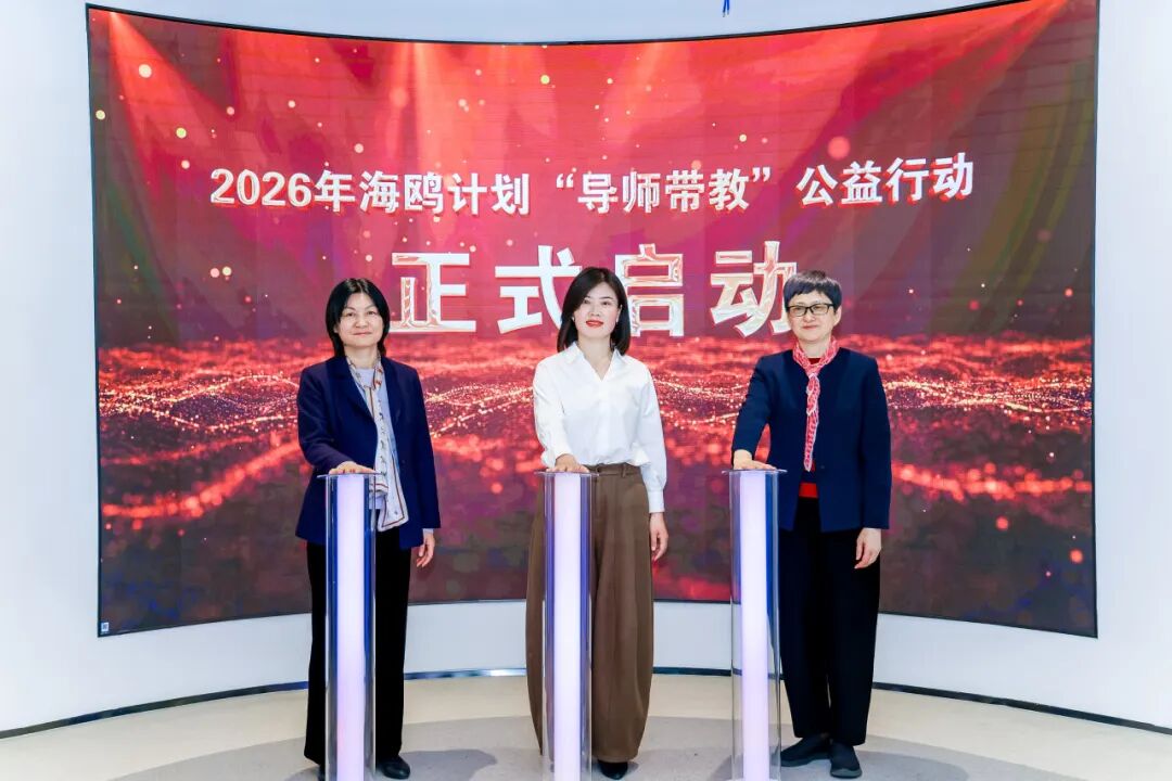 活动伊始,2026年海鸥计划“导师带教”公益行动率先发力,市妇联副主席彭艳、市教育工会女工委副主任肖辉、上海市女企业家协会轮值会长陈丽蓉共同上台按下启动键。