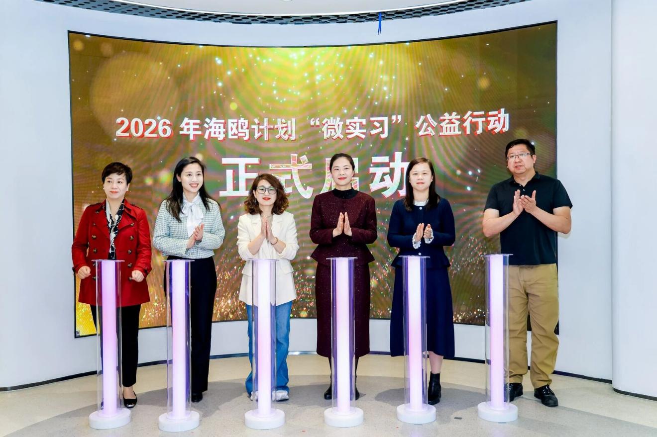 随后,市教育工会女工委副主任、华东师范大学妇委会常务副主任刘婕,普陀区妇联党组成员、副主席沈燕,普陀区人社局党组副书记、副局长龚燕凌,桃浦镇党委副书记高玮超,上海海蕴女性创业就业指导服务中心执行主任、联合创始人忻敏洁,紫竹高新区党委委员、妇联主席刘萍联手,共同启动了2026年海鸥计划“微实习”公益行动。